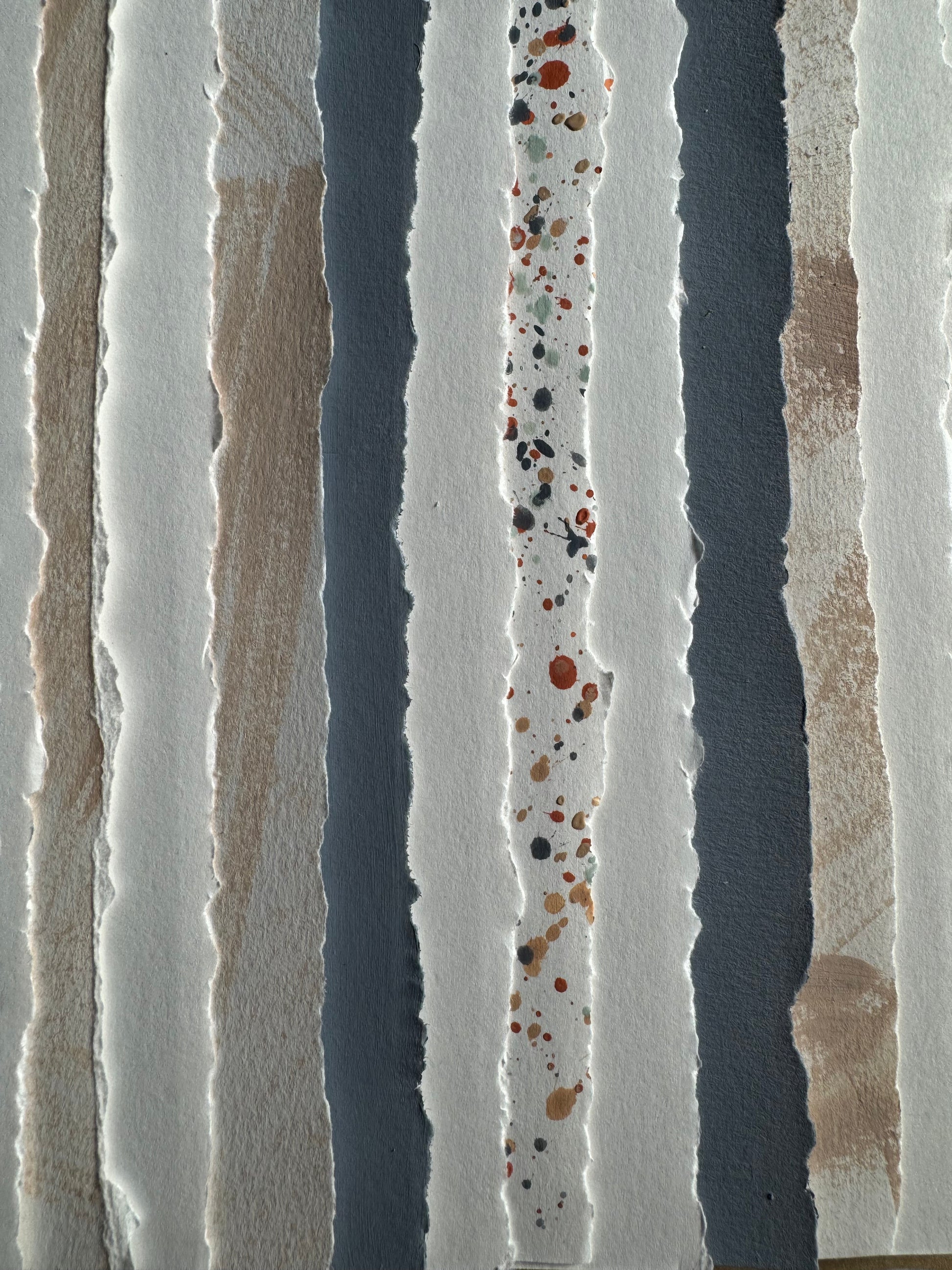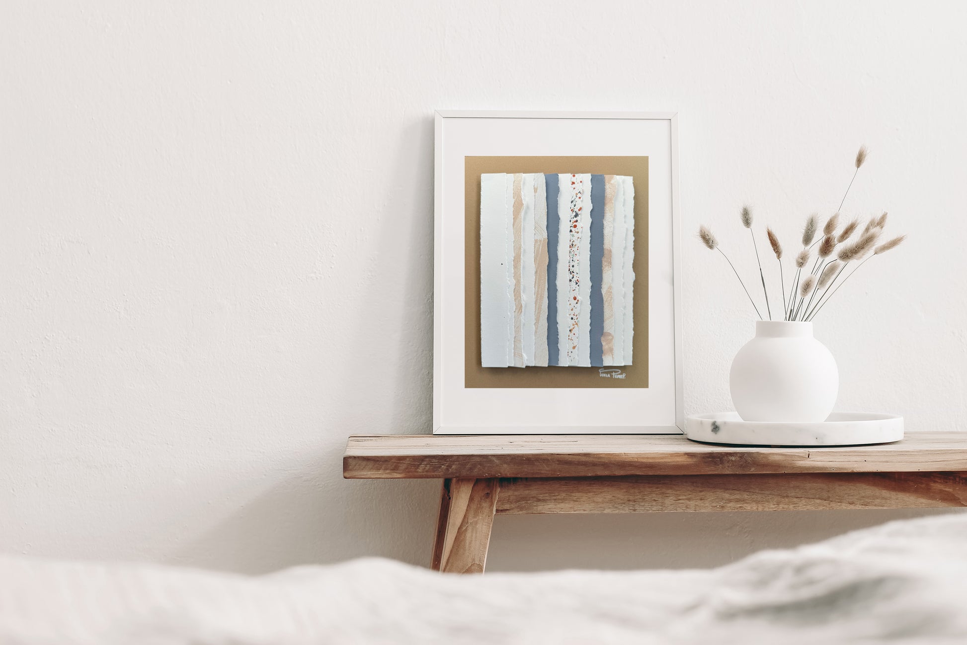 Inspired by the Mediterranean magnetism, this Series brings texture, bold pops of saturated colors and natural hues that evoke seaside memories of my summers in Spain. Paper texture in the artwork will capture the pattern the waves draw in the sand (see picture of "The birth of a painting").