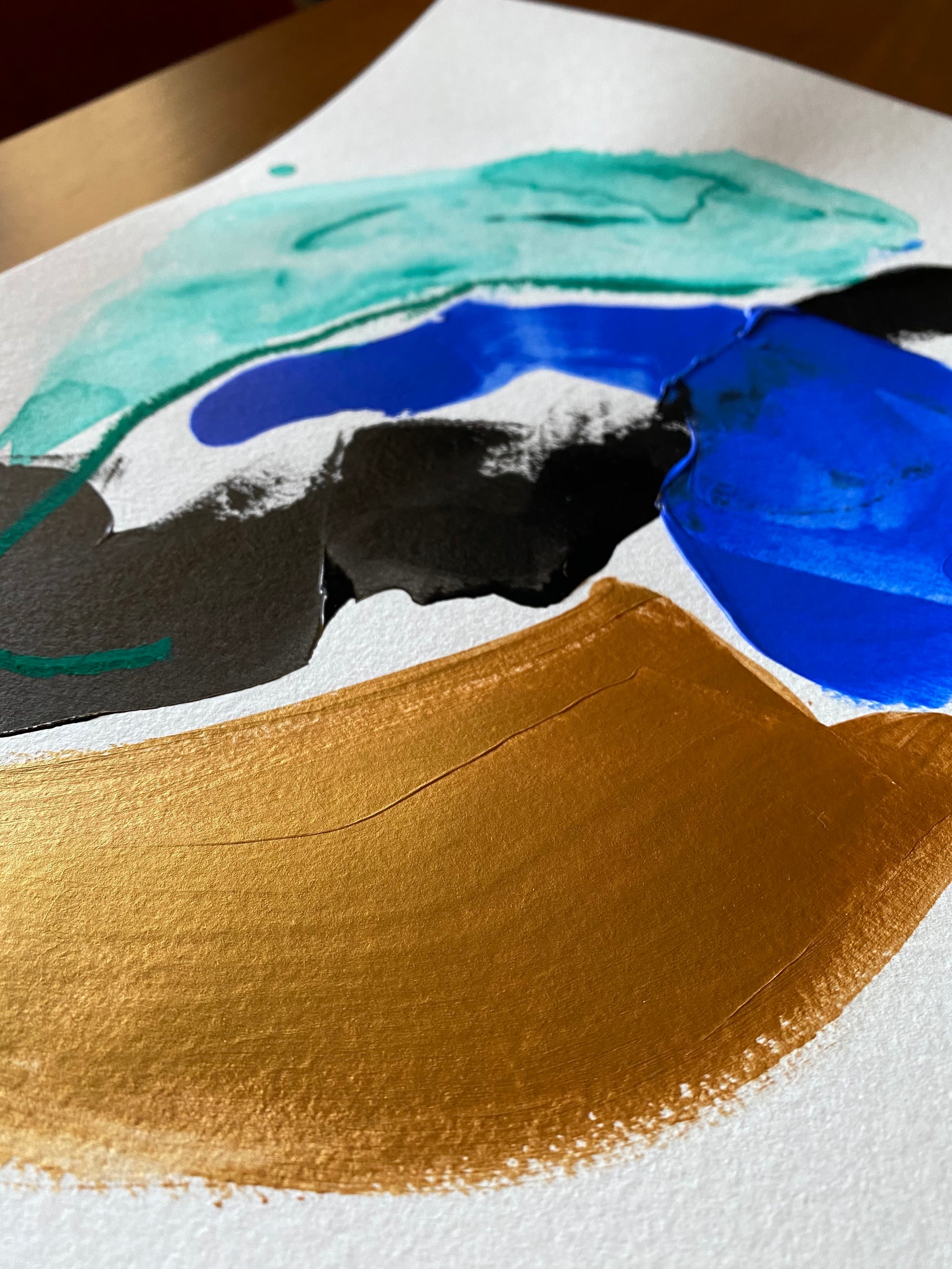 This piece was created in the joy of emulating the intrigue, beauty and style of Modern Abstract Expressionism. Focus on strong composition, shapes, color and texture with the intention to always be a powerful, inspiring presence in your space.