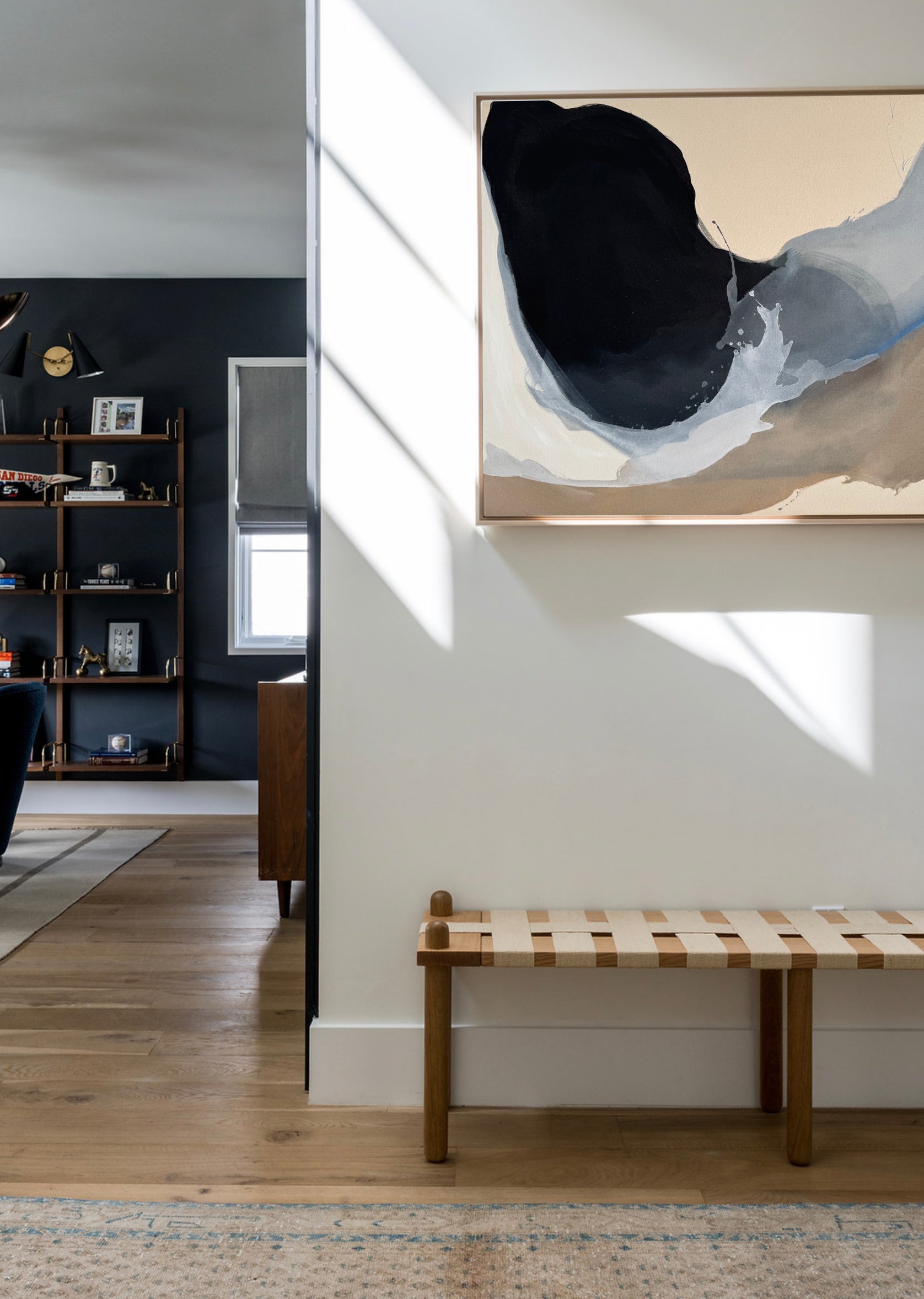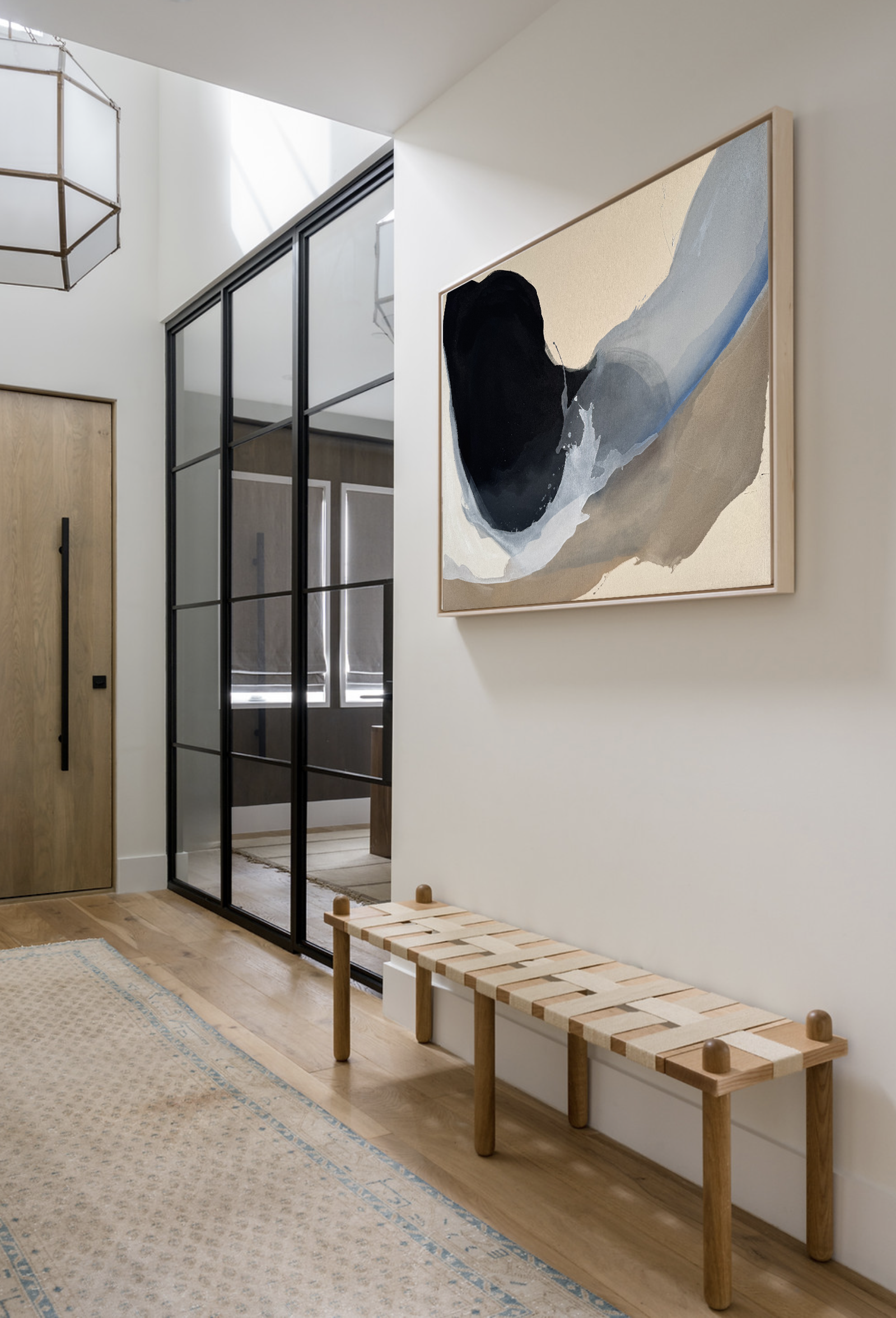 "A Breath of Joy." Imagine, if you will, the quiet alchemy of water, a whispered dance across canvas. Black, white, and the softest beige, layered like whispers, then a cool, cerulean blue—a gentle exhale. This piece wasn't painted, but rather coaxed, puddles guided into ethereal forms, leaving behind a sense of movement, a serene drift. It's the visual equivalent of a deep inhale, the release of tension, a moment of pure, unadulterated calm captured in pigment and form. A quiet joy, found in the fluid, the unexpected, the beautifully imperfect.