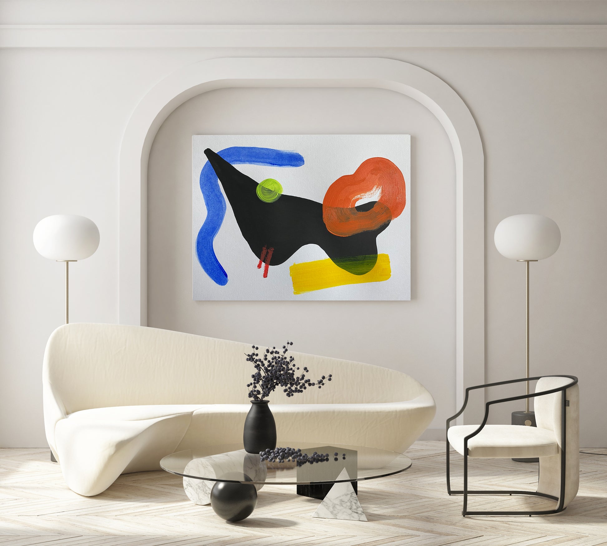 Joy and movement are the focus of this modernist inspired, Believe me. This bold and light-hearted piece of art started with thoughts of vintage dance instructions - but this piece of art is for those who do not necessarily follow all the rules.