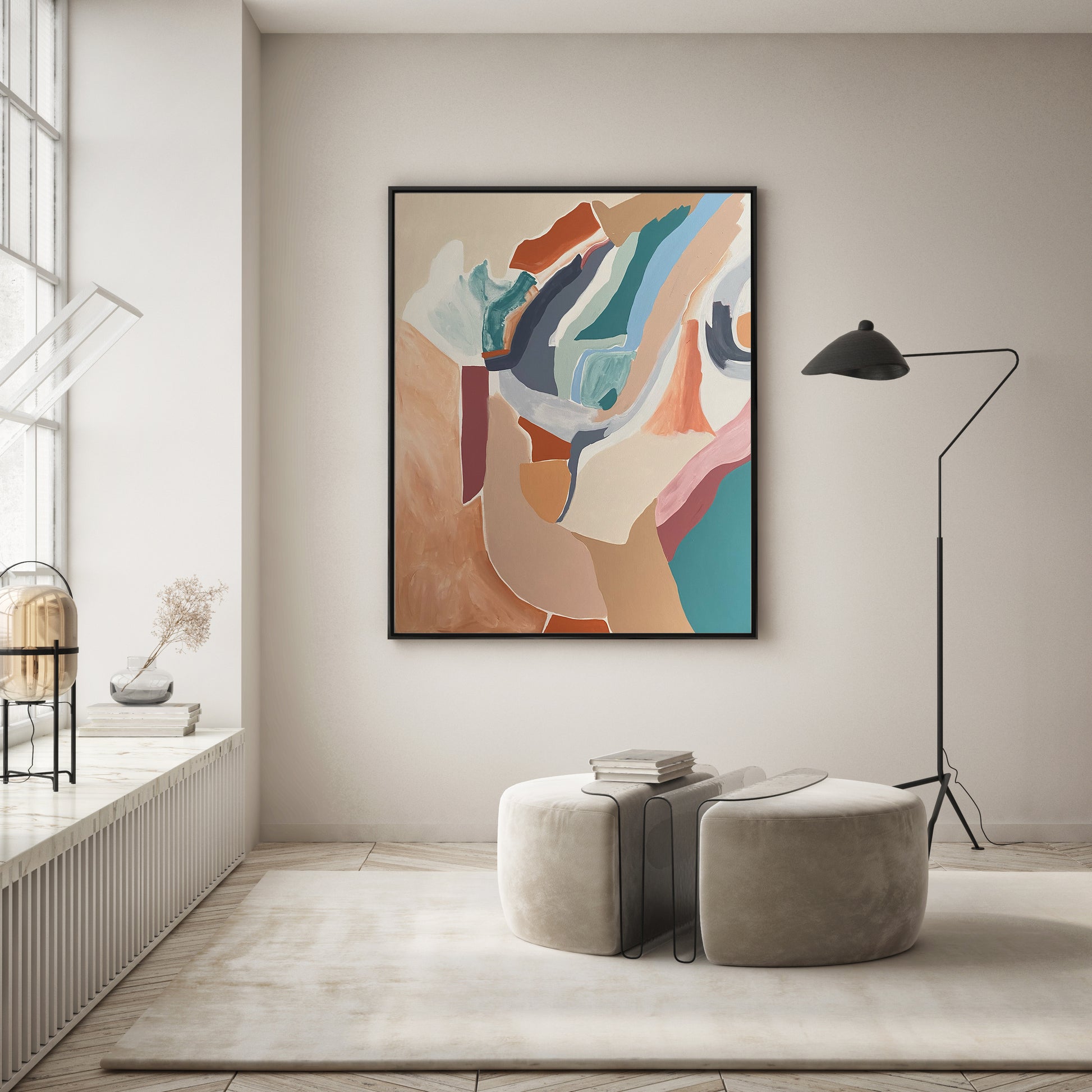 Awaken your inner peace with "Come In Closer," an abstract exploration of mindfulness from "The Power of Slow" collection. Earthy beiges establish a foundation of tranquility, while organic shapes dance in calming greens, grays, and blues. This piece embodies the essence of slow living, encouraging you to savor the present moment and appreciate the beauty that surrounds you. Let the gentle flow of colors guide you towards a place of serenity and reflection.