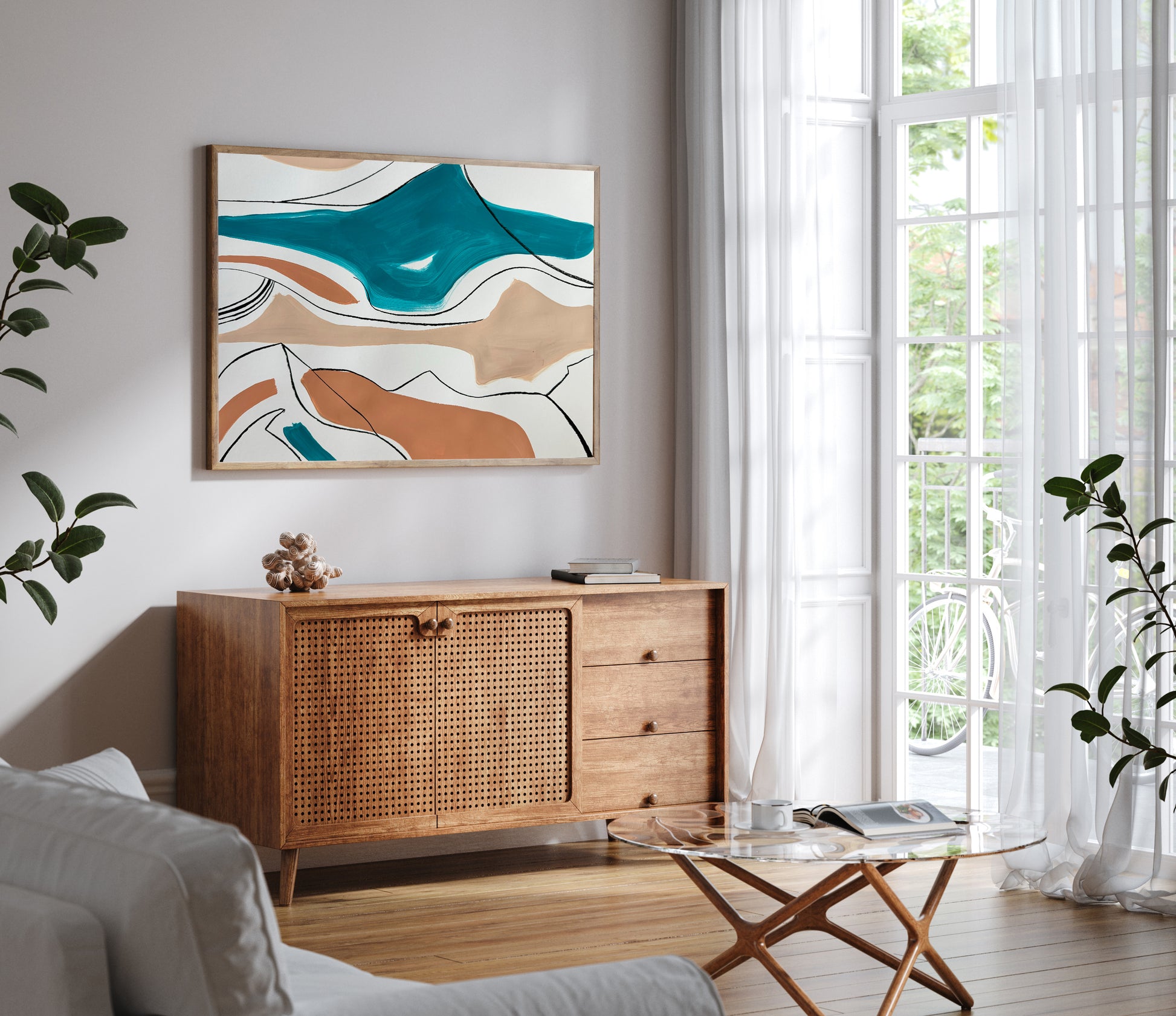 Turquoise diamonds shimmer like facets of a giant gemstone, held within a framework of serene beige. This artwork reflects the hidden order and complexity within seemingly simple structures.