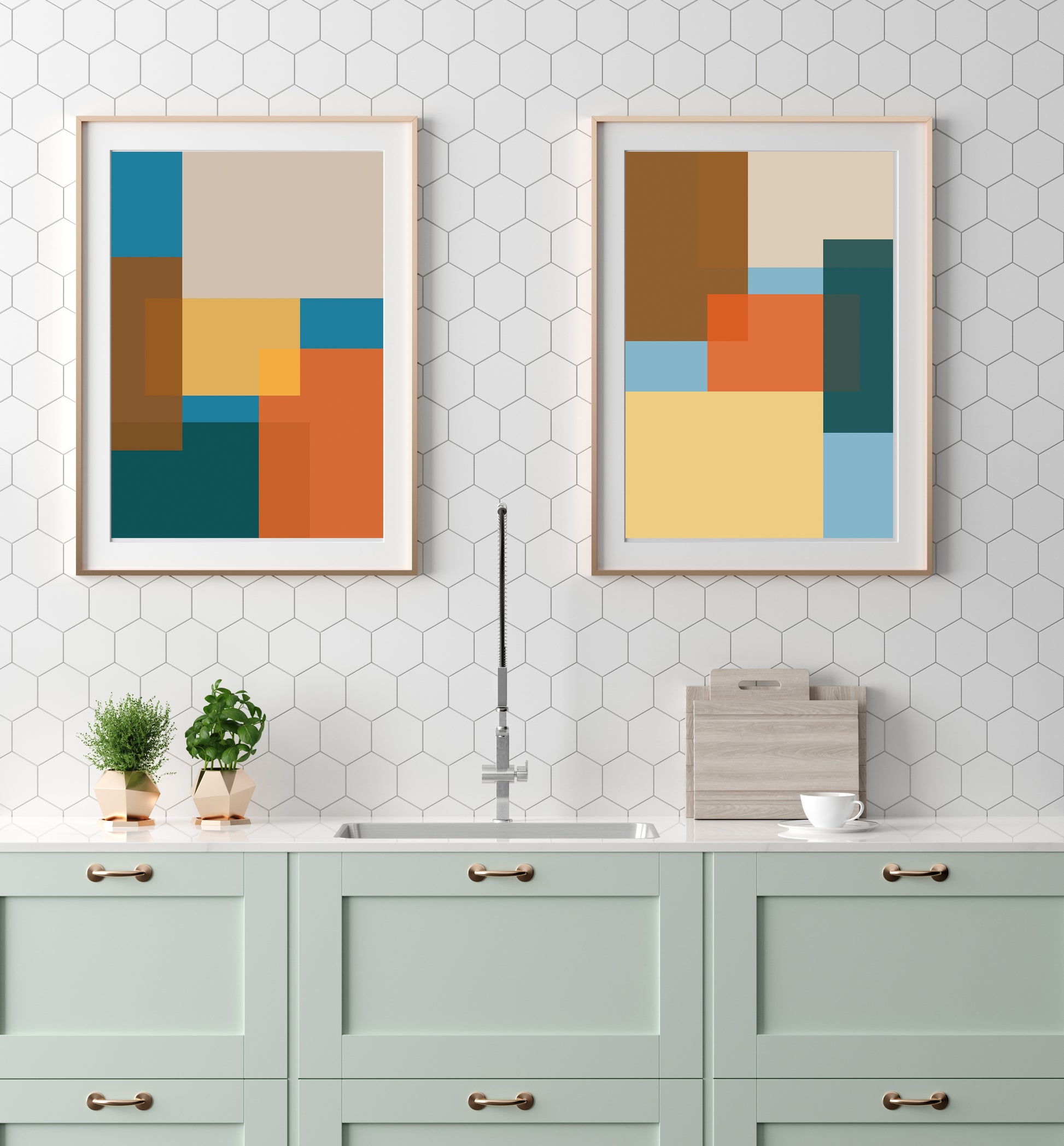 Inspired by color and pattern play, "For Now" plays with space, depth and light to create a sense of harmony. With For Now, I am interested in abstracts built on the fundamentals of sculptural shapes and palettes that draw the eye in with curiosity.
