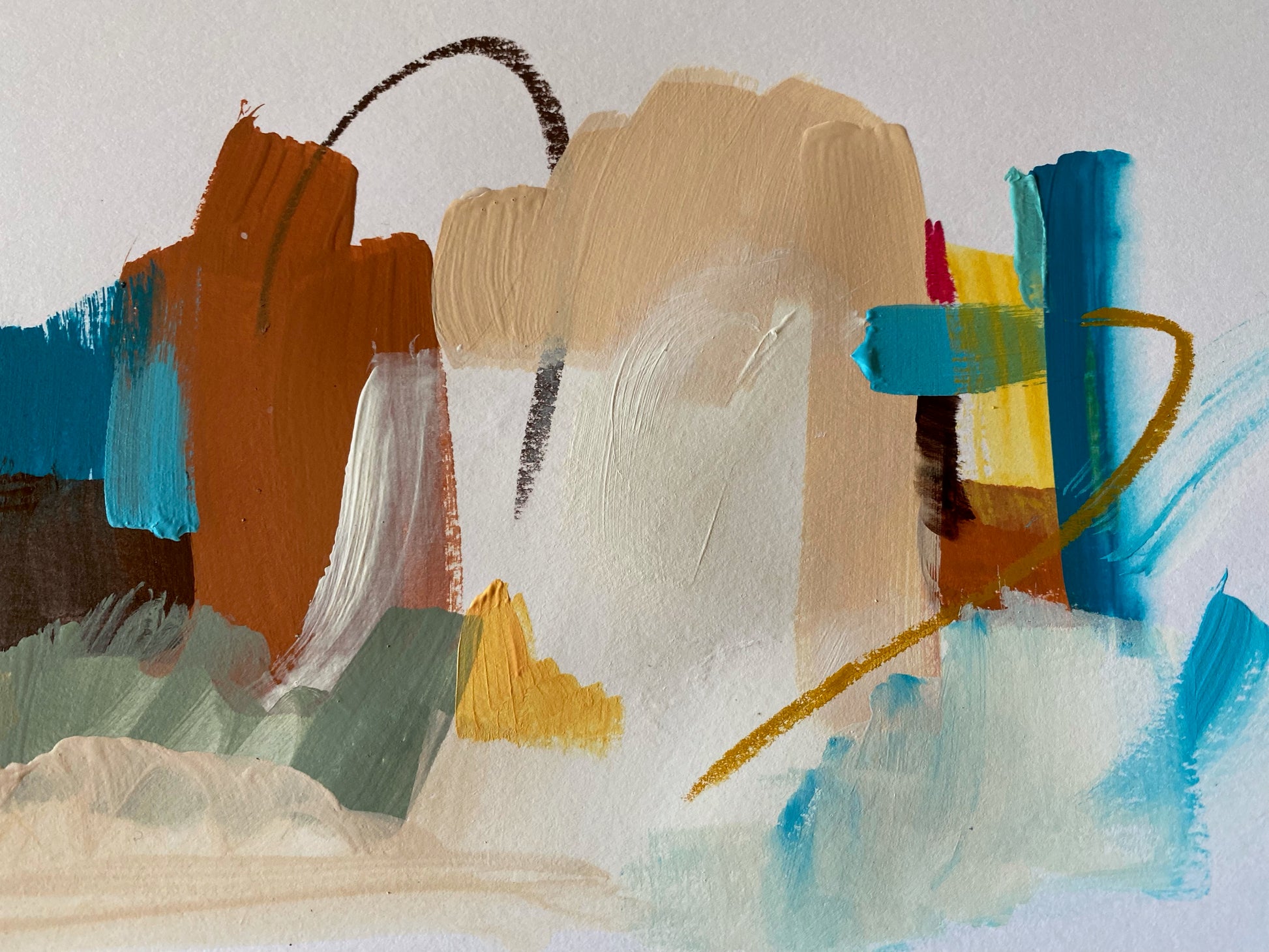 There are so many ways to look at a city. I like to take photographs and then paint them in the simple shapes I see. I use color to show the difference in light. This abstract painting is a representation of a city lights and buildings all nestled together.