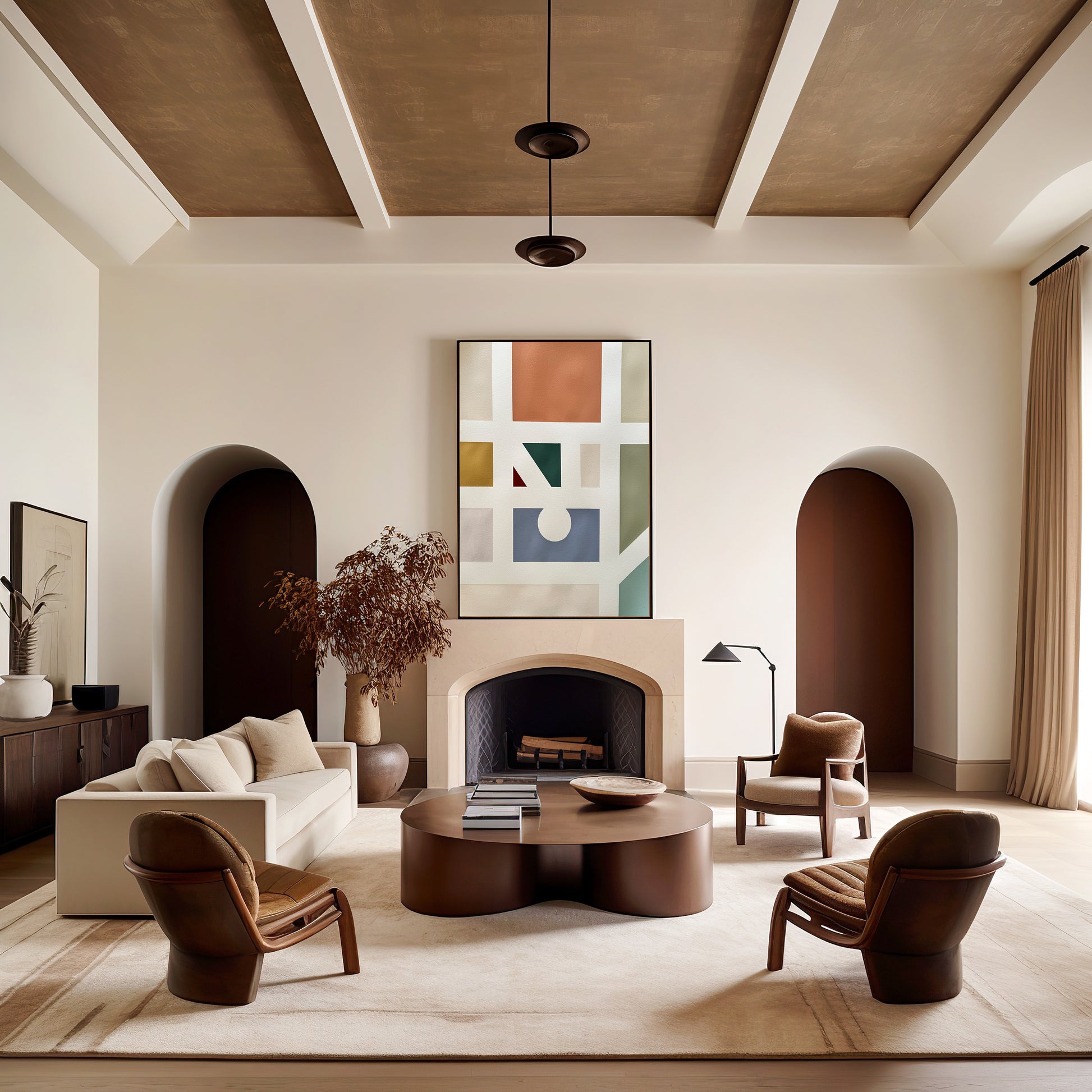 This abstract artwork, painted in soft, neutral hues, invites us to contemplate the intricate dance of nature's forces. The geometric patterns, seemingly random yet meticulously arranged, symbolize the underlying order that governs the universe. The neutral colors, a canvas of earth tones and sky hues, represent the duality of nature: light and dark, growth and decay, creation and destruction.