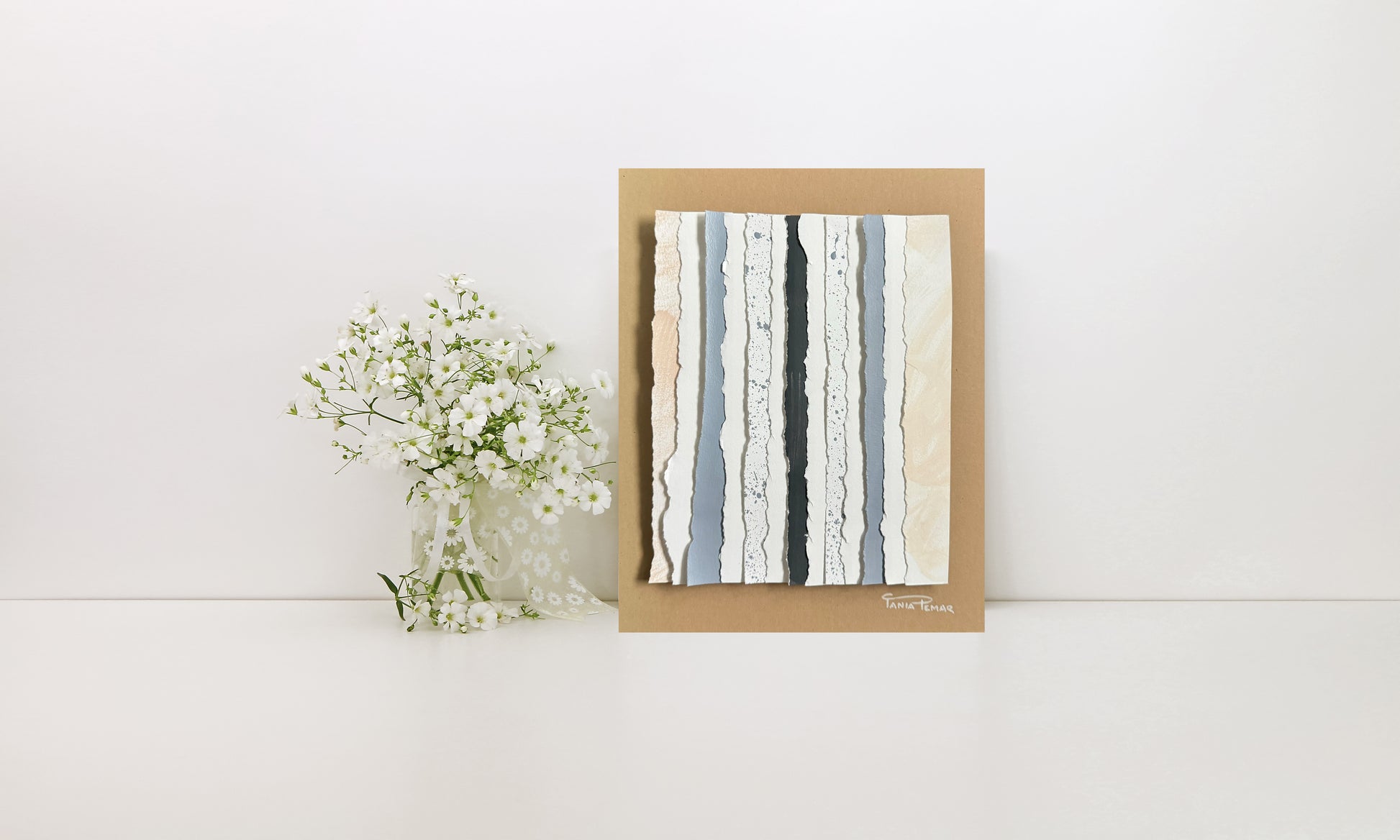 Inspired by the Mediterranean magnetism, this Series brings texture, bold pops of saturated colors and natural hues that evoke seaside memories of my summers in Spain. Paper texture in the artwork will capture the pattern the waves draw in the sand (see picture of "The birth of a painting").