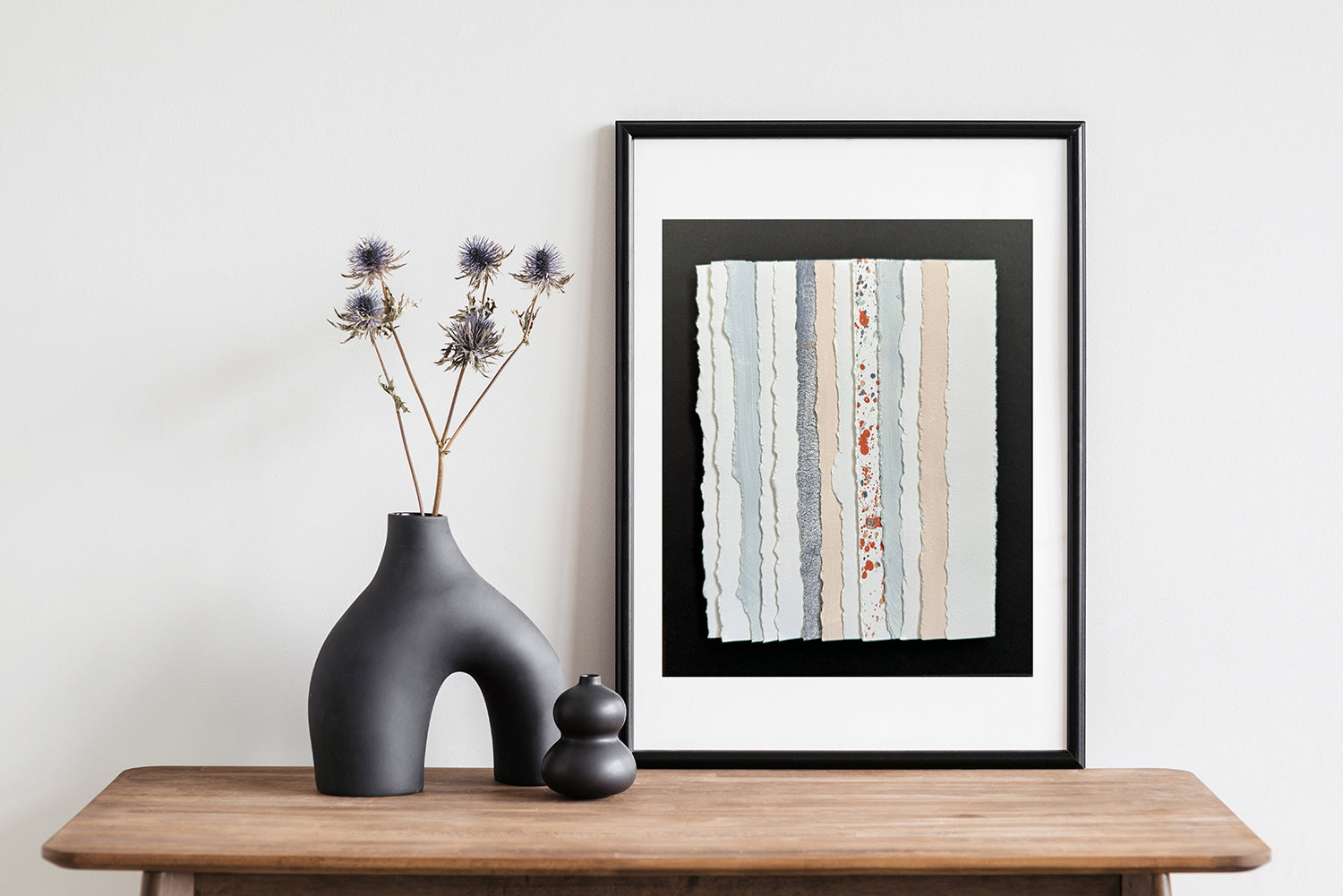 Inspired by the Mediterranean magnetism, this Series brings texture, bold pops of saturated colors and natural hues that evoke seaside memories of my summers in Spain. Paper texture in the artwork will capture the pattern the waves draw in the sand (see picture of "The birth of a painting").