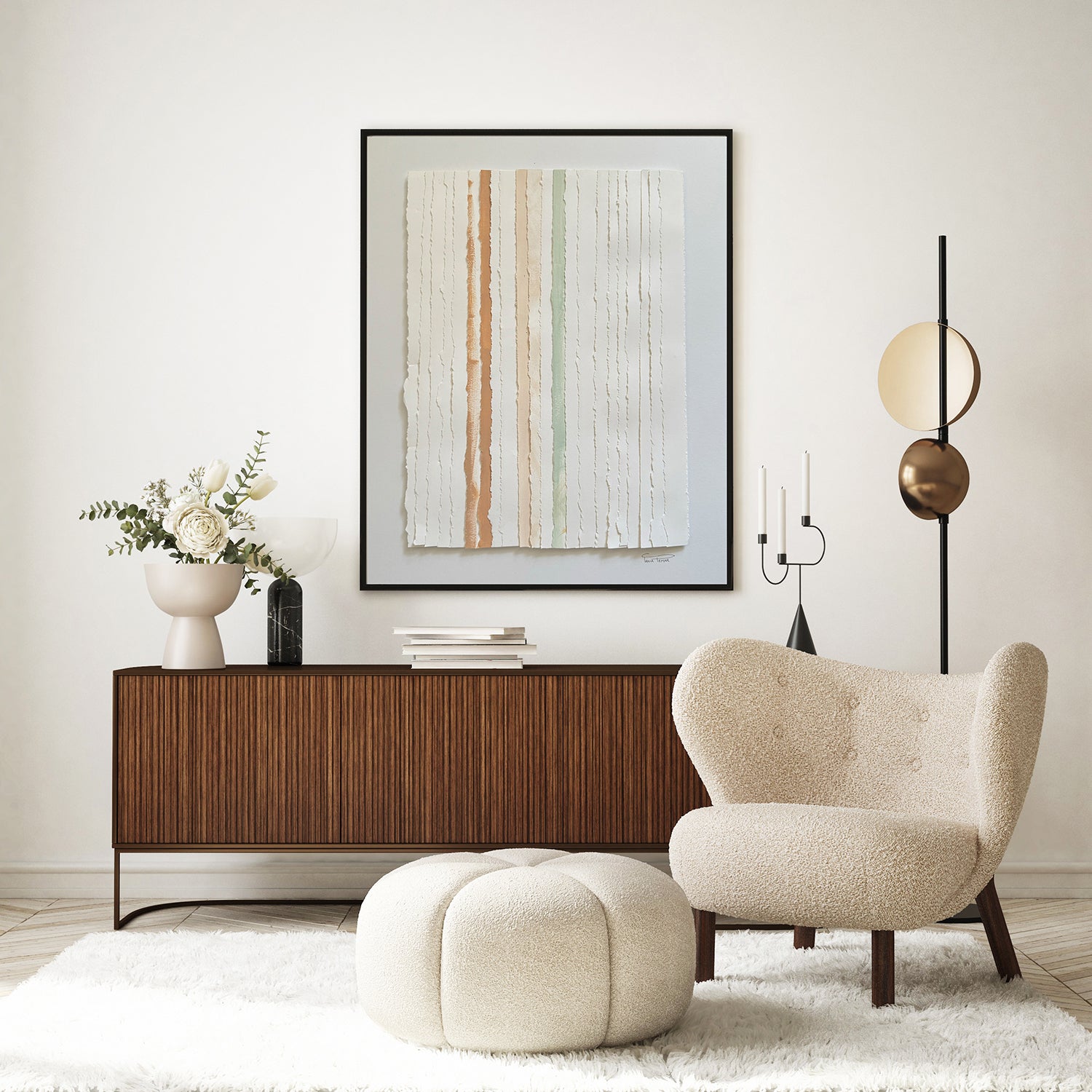 Inspired by the Mediterranean magnetism, this Series brings texture, bold pops of saturated colors and natural hues that evoke seaside memories of my summers in Spain. Paper texture in the artwork will capture the pattern the waves draw in the sand (see picture of "The birth of a painting").