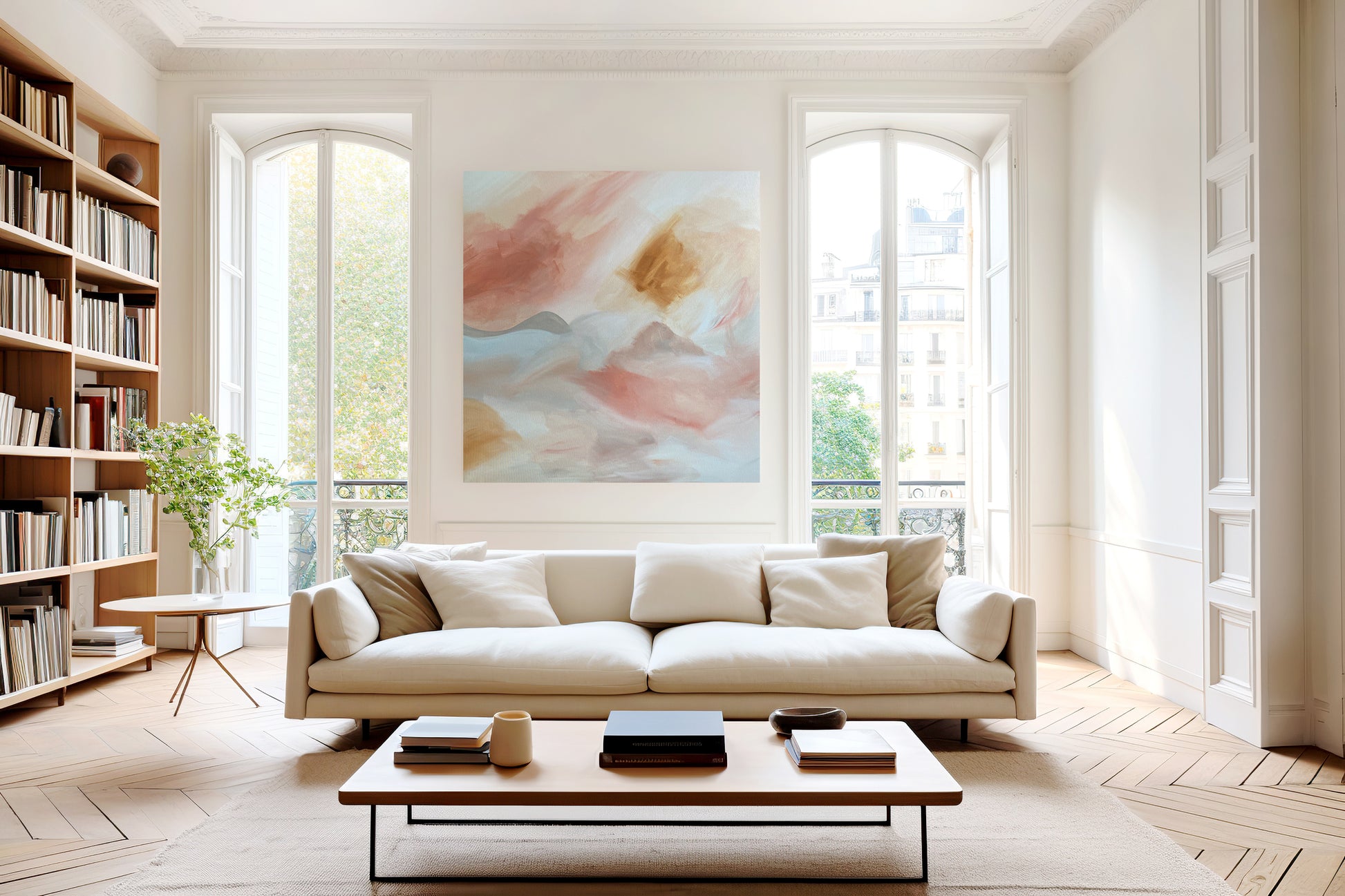 Abstract artwork painted with acrylics over archival cotton canvas