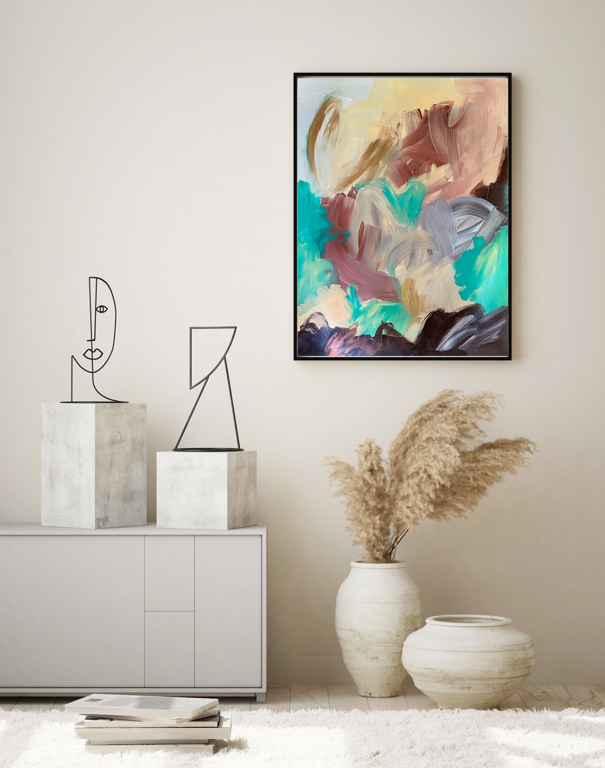 I was born in the land with more olive trees in the world (Jaen, Spain). Every time you go out to the country, the only thing you can see is hills full of olive trees. And as far as your seen can go, the only thing you can contemplate is olive trees. It is beautiful! My mind travel there very often despite the distance now (living in Kansas, USA). I can see myself when I was a little girl walking between olive trees, seeing the leaves move with the wind and listening the footsteps of my grandfather as he was walking with me and holding my hand. That was my inspiration when painting this piece. I hope I can transport you there.