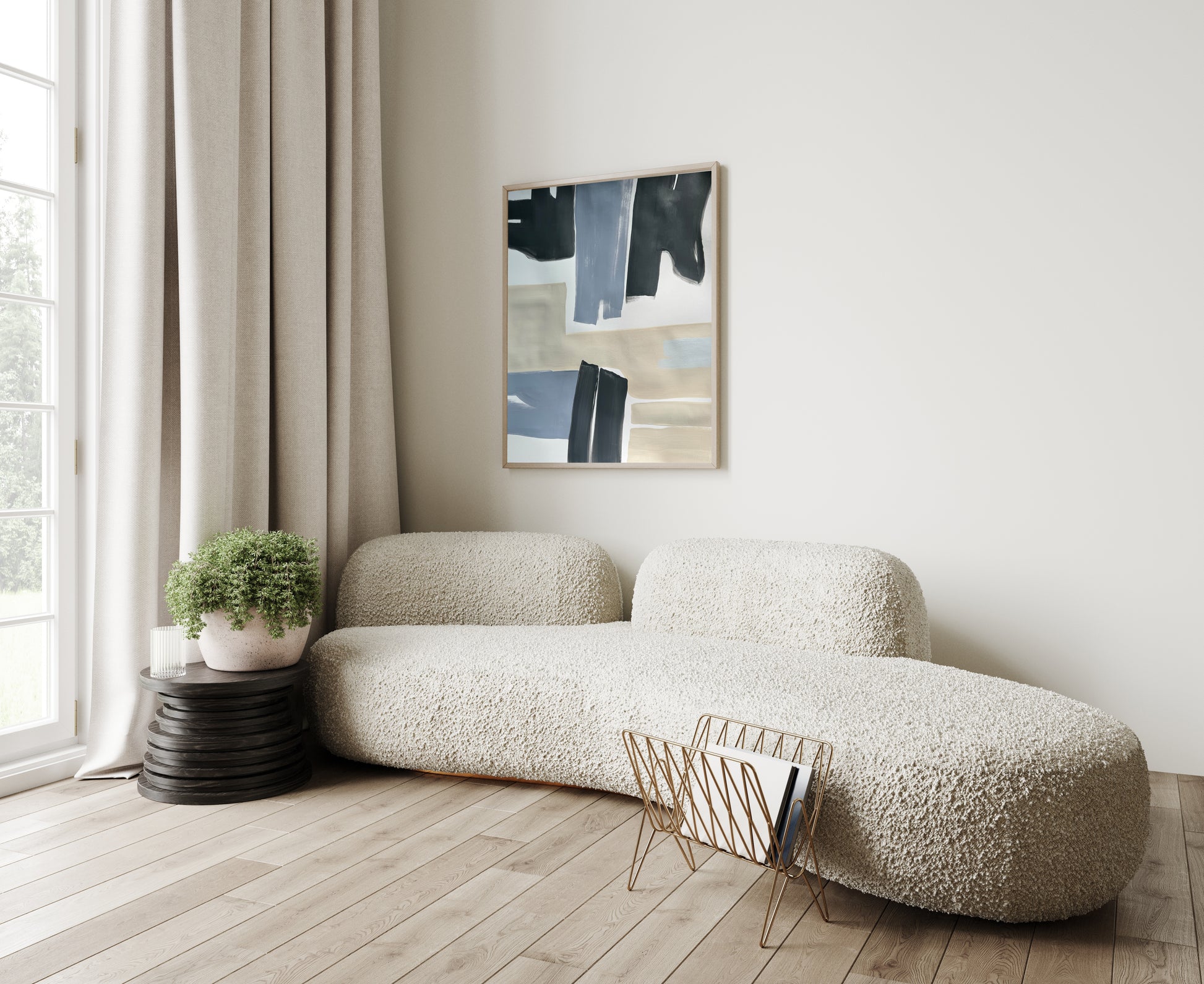 This serene piece, from the "Nature's Whisper" collection, evokes the calming beauty of a dawning day. Created on paper, a delicate interplay of light blue, light grey, and beige washes across the surface. The abstract composition whispers of the subtle hues that paint the sky as darkness gives way to light. Imagine the soft blue tones of the pre-dawn sky, merging with the gentle greys of lingering mist and the warm beige of the earth awakening to a new day.